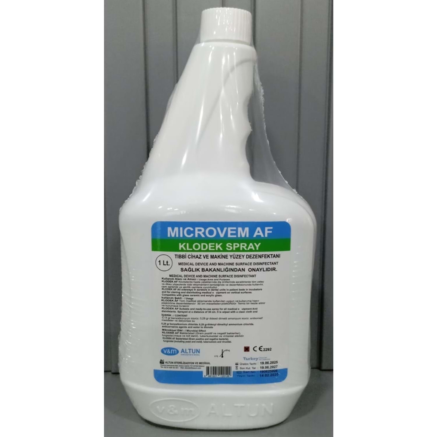 MICROVEM AF KLODEK SPRAY YÜZEY DEZENFEKTANI 08681221120122 Lot/Batch Numarası:190625006 19/06/2027